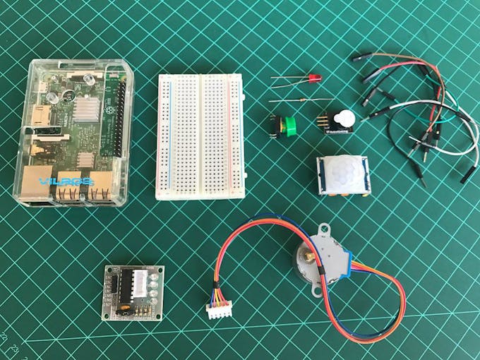 Explorar agora outros dispositivos comuns incluídos na biblioteca. Aproveitaremos um buzzer e um sensor de movimento (PIR) que juntamente com um LED funcionarão como um alarme simples.