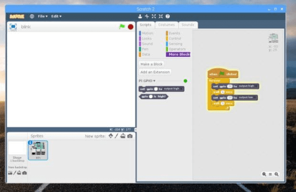 Uma versão offline do Scratch 2 é fornecida com o sistema operacional Raspbian, com recursos que o ajudarão a criar uma codificação bem profissional.