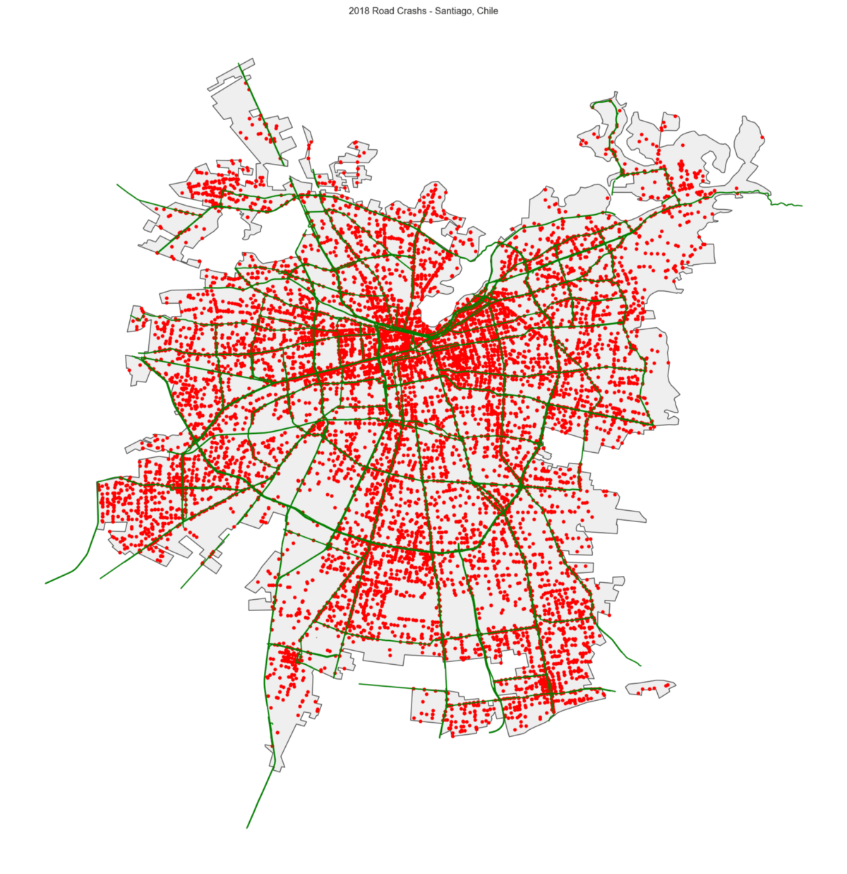 Wow! Visually seems that almost every road in Santiago had a car crash in 2018!