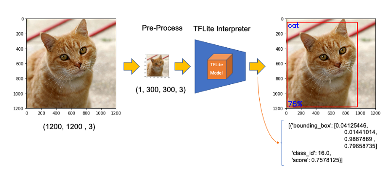 Having the image pre-processed, now it is time to perform the inference, feeding the tensor with the image and invoking the interpreter: