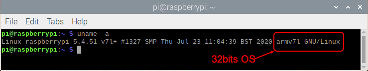 As shown on image below, if you get …arm7l…, the operating system is a 32bits Linux.