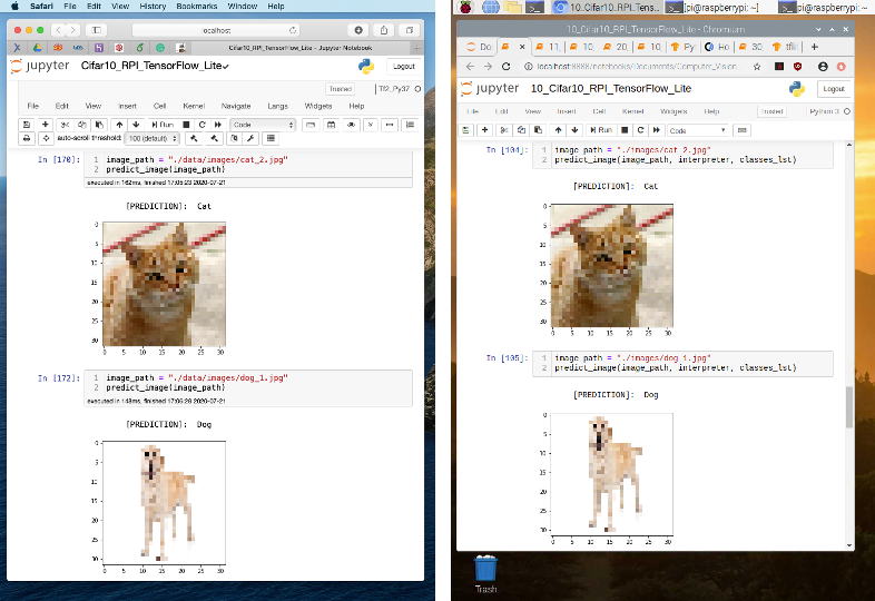 For example, I trained from scratch a simple CNN Image Classification model in my Mac (the “Server” on the above figure). The final model had 225,610 parameters to be trained, using as input the CIFAR10 dataset: 60,000 images (shape: 32, 32, 3). The trained model (cifar10_model.h5) had a size of 2.7Mb. Using the TFLite Converter, the model used on Raspberry Pi (model_cifar10.tflite) became with 905Kb (around 1/3 of original size). Making inference with both models (.h5 at Mac and .tflite at RPi) leaves the same results. Both notebooks can be found at GitHub.